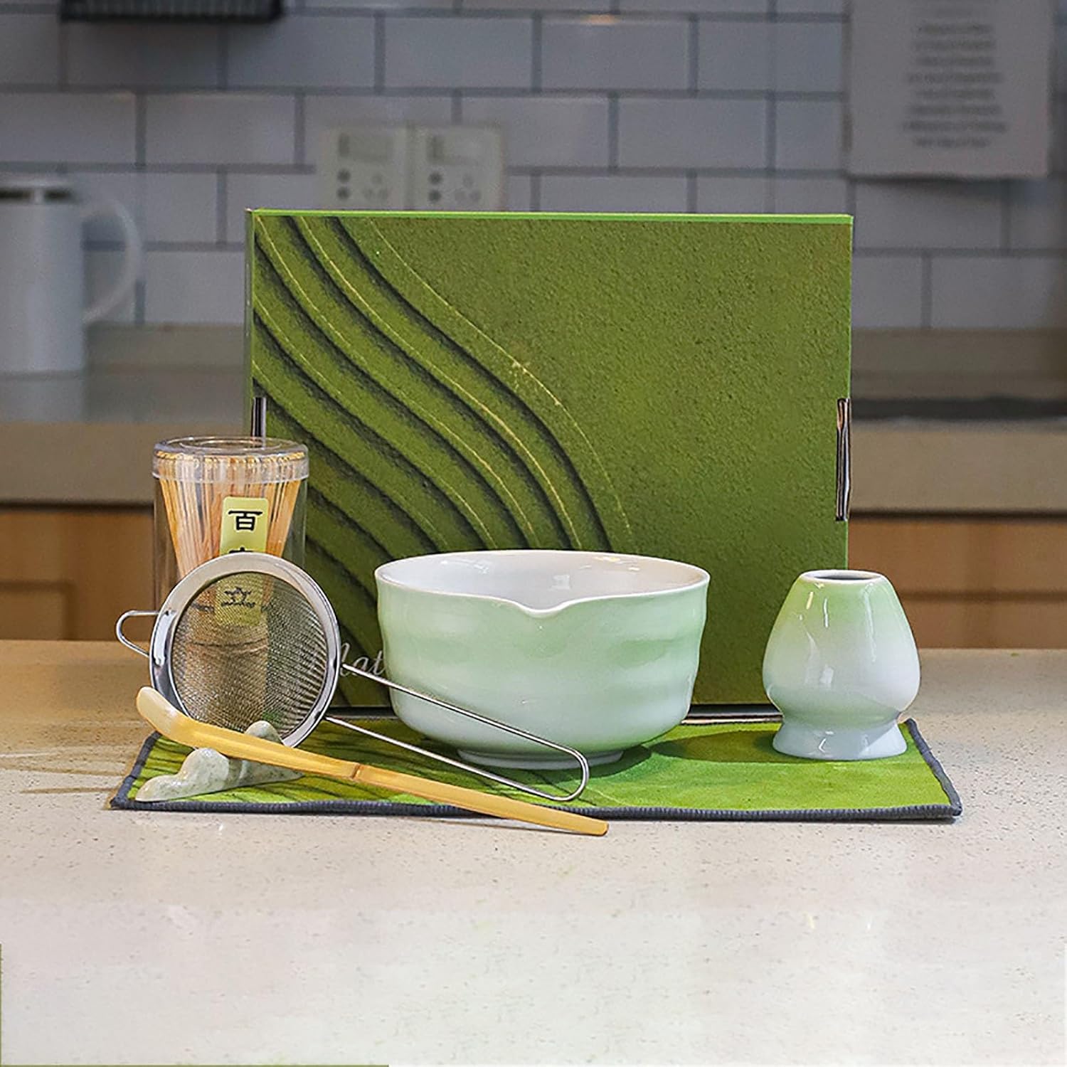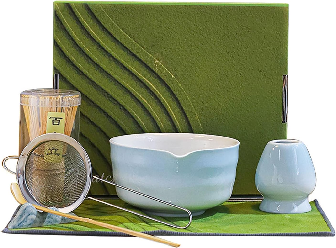 Features:Excellent materialThe matcha set is made of high-quality bamboo and ceramics, safe and reliable to use.Tea towelComfortable feel of coral fleece water imbibition is strong.304 Stainless steelThin mesh, double filter filter tiny tea-leaf effectively.Tea spoonDetails tea spoon head bending Angleto facilitate the tea into the bowl.Save spaceThe matcha set is small and lightweight, so it won't take up too much desk space.Wide range of usesTea making tools can be used in many places, such as homes, beverage shops, etc.Suitable for the crowdThis tea set can be used by professional tea brewers and is also very friendly for people who are just starting to learn.Specification:Name: Matcha Blender SetMaterial: Ceramic + BambooBowl capacity: 500mlQuantity: 7Pcs/setBowl size: 12.8 * 14.3*7.8cmTea whisk size: 6.1 * 6.9cmTea brush size: 11.4 * 6.2cmTeaspoon length: 18.6cmStainless steel filter length: 20.5cmShelf size: 7.6 * 2.4cmTea towel size: 30 * 16.3cmPacking included:1 x Matcha Blender Set ( 7Pcs )Note:1. Due to manual measurements and slight color variations, please allow 1-3 cm (0.4-1.18 inches) difference to suit different display settings.2. Due to the light and screen difference, the item's color may be slightly different from the pictures. Please understand.