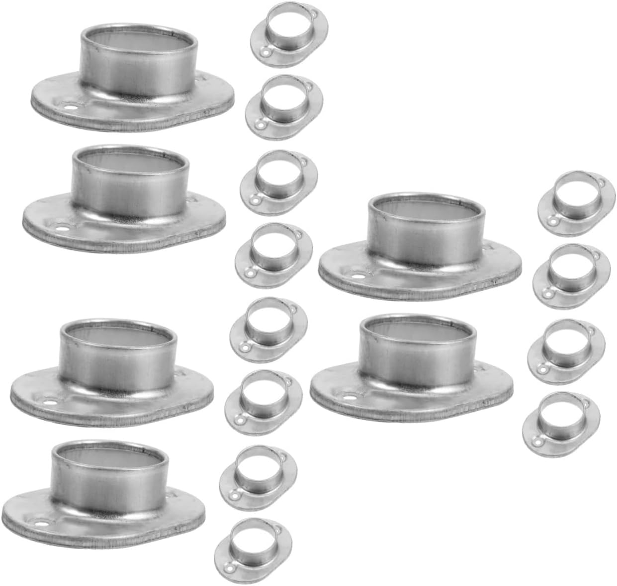 Package List 30 x Round Tube Post Bases Features -Color:Silver round post flange -Material:Zinc steel railing supports for decks -Size:10.50X7.50X3.00cm/4.13X2.95X1.18in floor flange base -Note: Suitable for 48mm round tubes post base. -Providing a secure and sturdy connection base for the round post, enhances stability and reliability post bracket. -Adds of elegance to your fence with this post base, enhancing the overall aesthetic appeal floor flange. -The round post base is easy to install, the installation process, saving time and effort post flange. -Floor flange base meets different requirements and surrounds, allowing for flexibility in use tube base -Made of zinc steel material, ensuring rust resistance and durability for long-lasting use round post base.Goods Descriptionfloor flange Crafted from zinc steel material, offers excellent rust resistance and durability for prolonged usage.handrail base flange Enhance the stability and reliability of your round tube fence with the connector base.round post flange base Round post base is designed to meet different needs and is widely used in various occasions