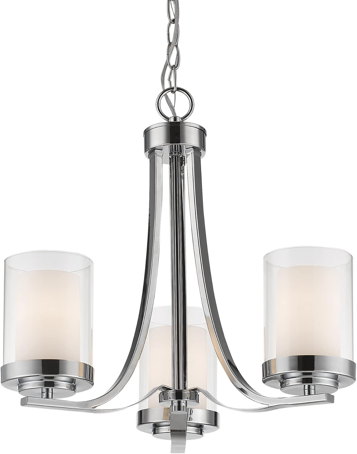 Give your dining room or great room a chic, sophisticated update. This beautiful, matte black chandelier features three glowing bulbs beneath three delicate, glass shades that are white on the inside and clear on the outside. An exquisite lighting option to highlight your refined sense of style.